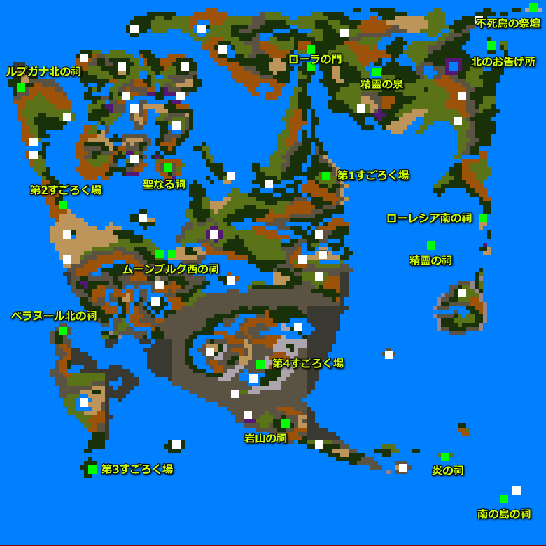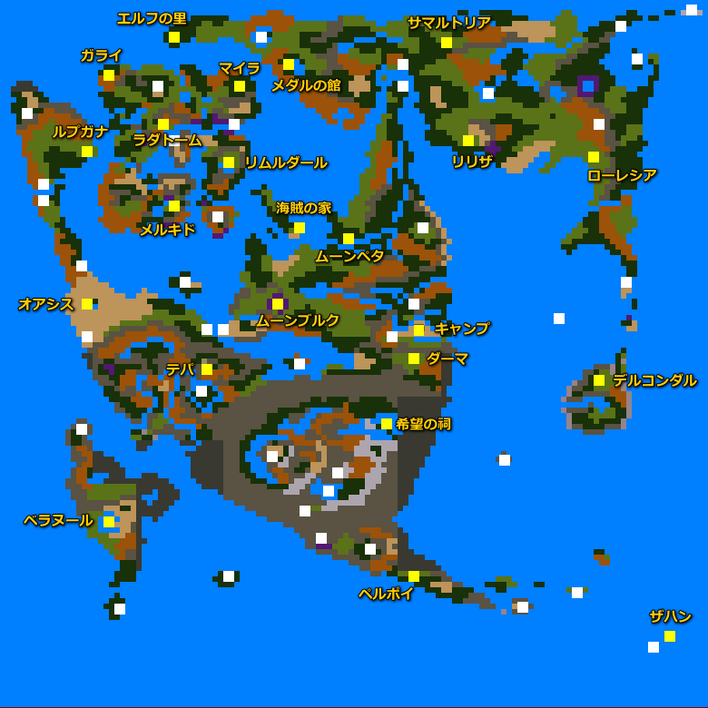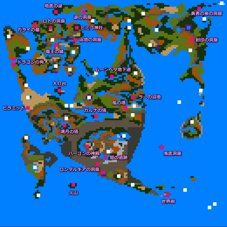 원작 DQ2에 없는 엘프의 숲 및 오아시스 그리고 다마신전 등이 추가된 것을 알 수 있다.
